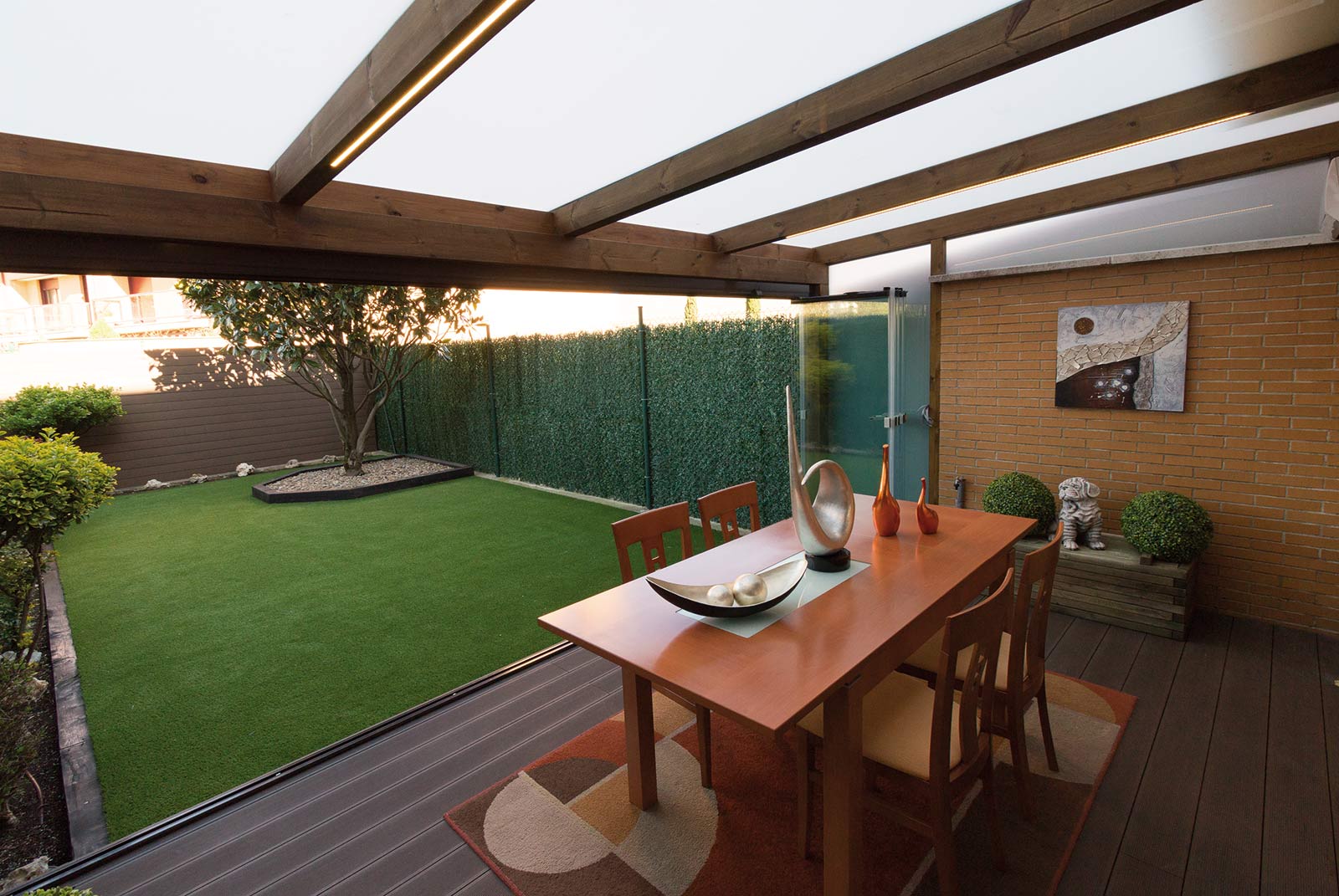 A continuación te mostramos los proyectos de jardín, cerramientos de cristal en porches, porches acristalados en áticos, acristalamientos exteriores, interiorismo.